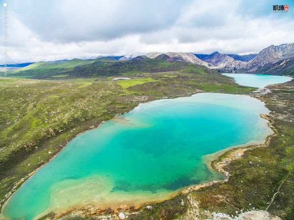 姊妹湖位于巴塘到理塘这一段的318国道上。这片群山中有一千多个大大小小的海子,故名“海子山“。姊妹湖是其中两个相邻的大海子。阳光下我们在湖边放飞无人机,两个湖泊尽收眼底。由于矿物质含量多,湖水泛着牛奶蓝色,在背后的雪山映衬下,显得非常灵动。